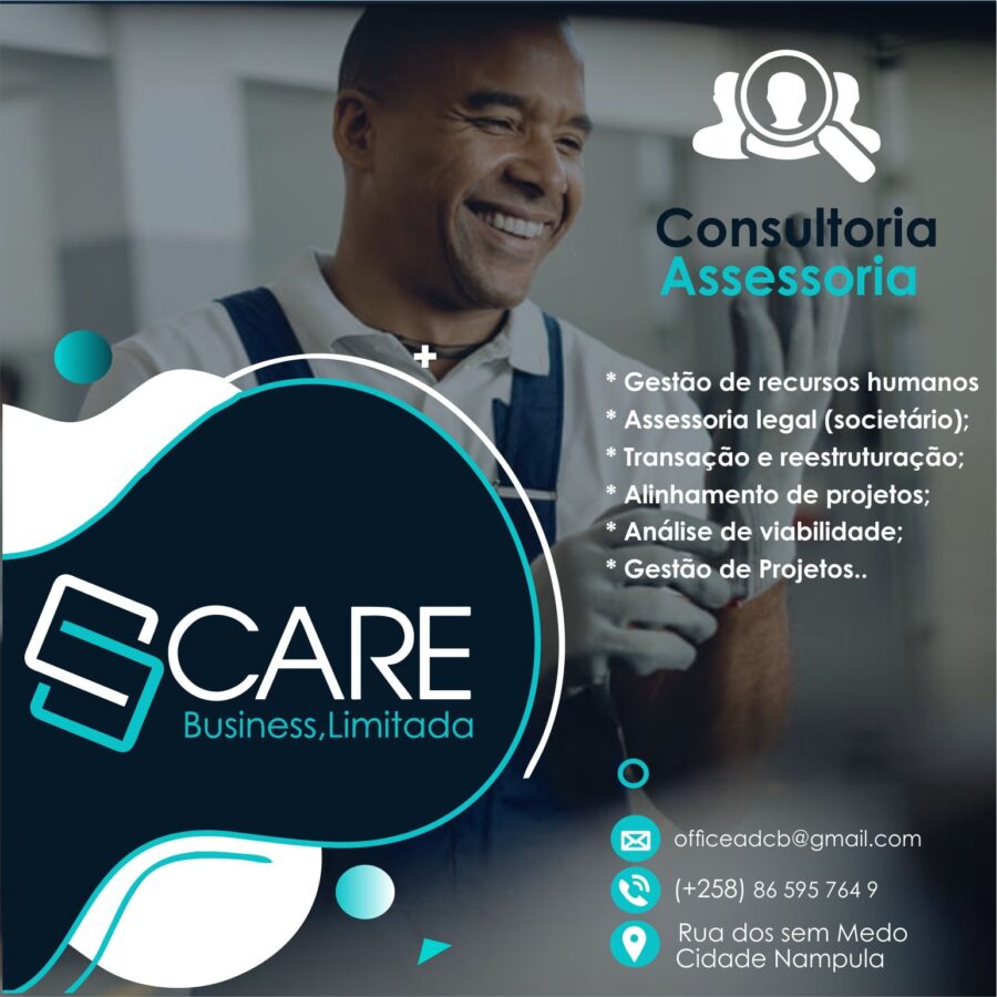 A CARE BUSINESS é resultado de 8 anos de dedicação e persistência, começou como Moza Business ( que trabalhava com marketing e gestão de projetos) com dificuldades e aprendizados hoje a marca tomou um nome mais robusto e uma imagem criativa, assim se propõe também no seu crescimento quer financeiro assim como no mercado.