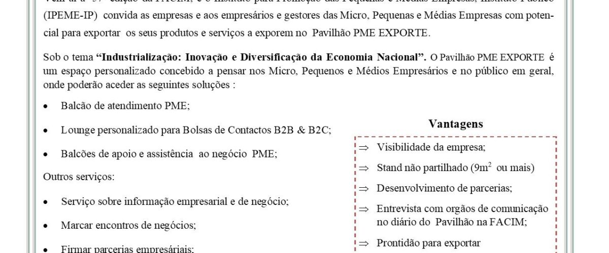 Participe nesta que é a maior montra comercial de Moçambique, através do Pavilhão PME Exporte.